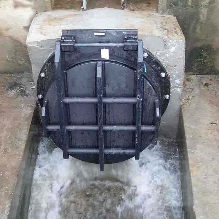 拍门有防止潮水倒灌、可作为竖直井盖使用的作用。当水超过水位时,拍门自动关闭防止水倒灌,当水位低于里面的水时,会自动把拍门冲开,往外···